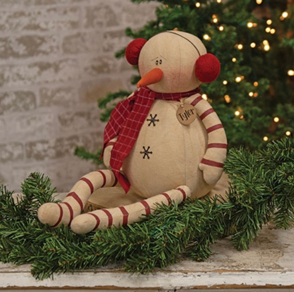 Tyler, the snowman will go great with any style holiday and home decor. Keep him out all winter long. He looks adorable, sitting on a fireplace mantle with his legs dangling down. The possibilities are endless for decorating with Tyler the snowman this holiday season