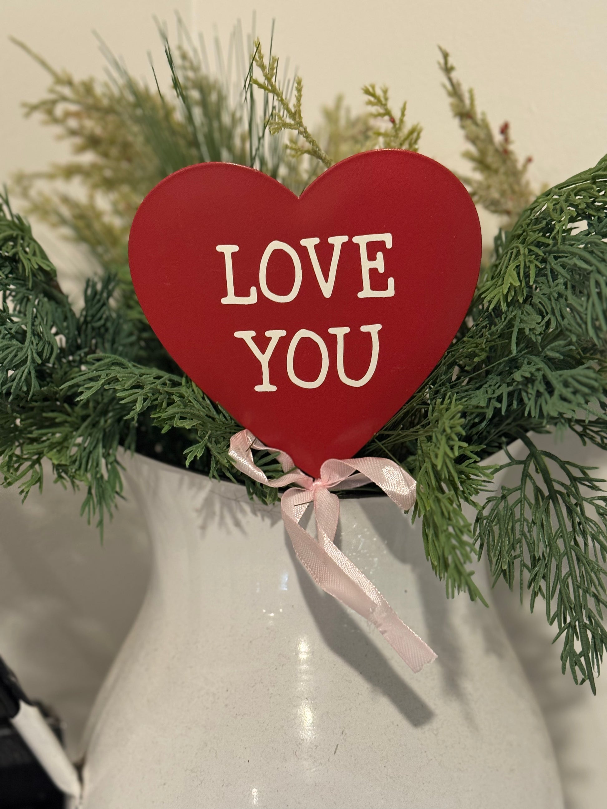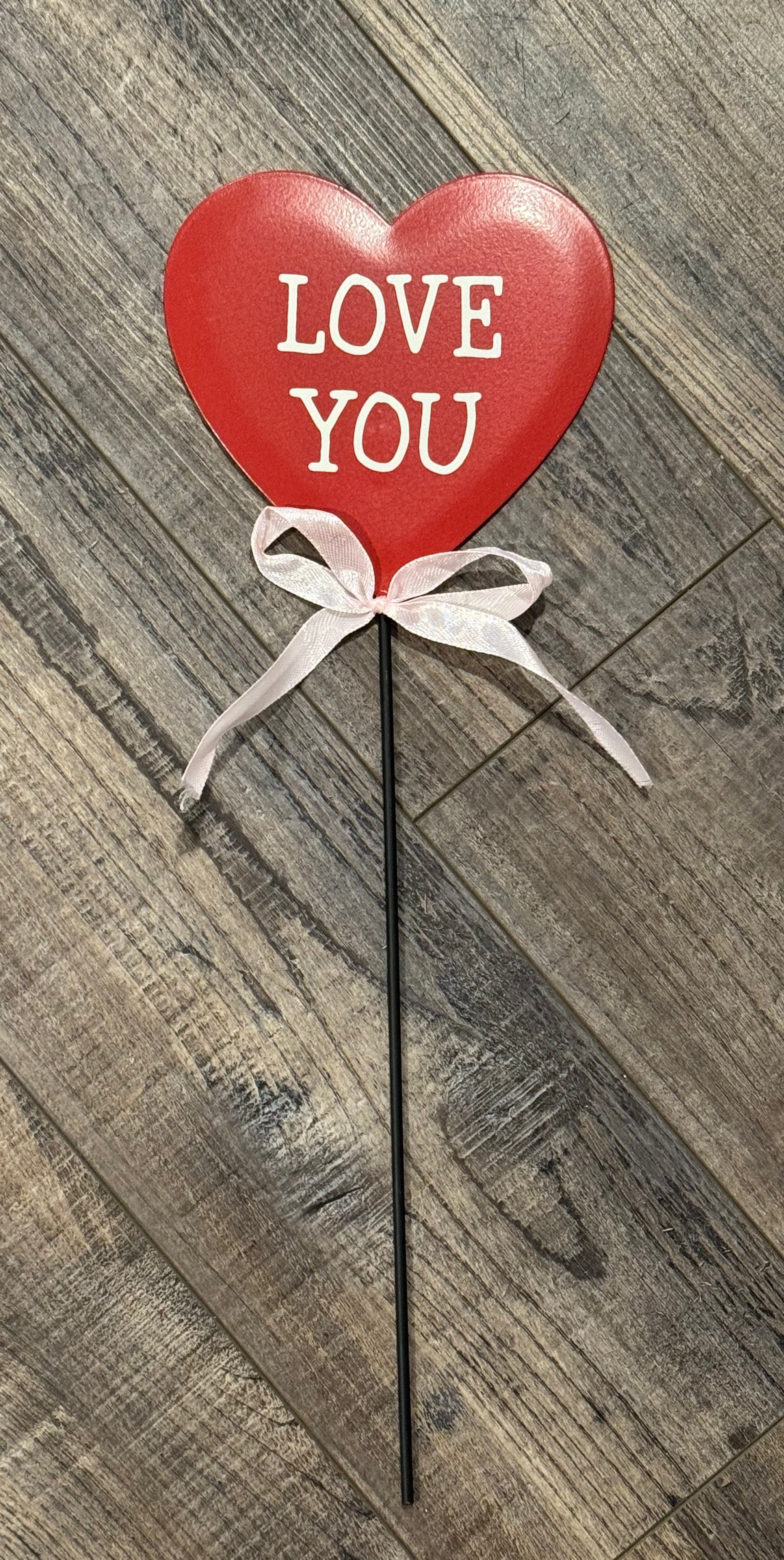 Valentine Plant Poke - Valentine’s Day decor- Metal heart I Love You